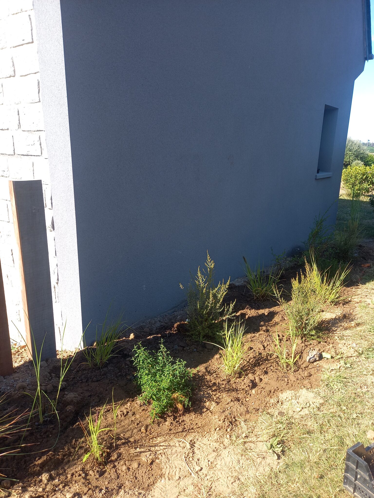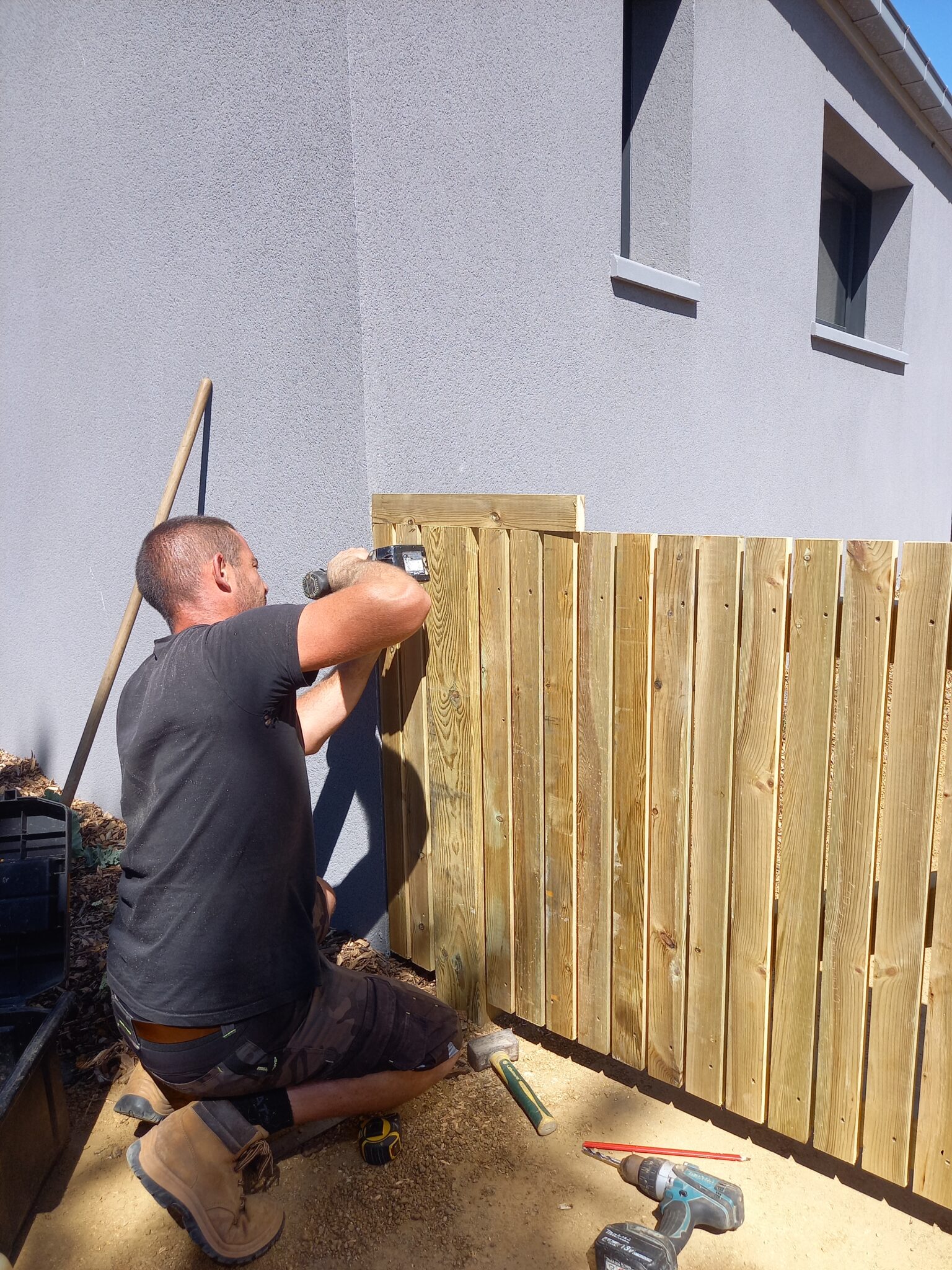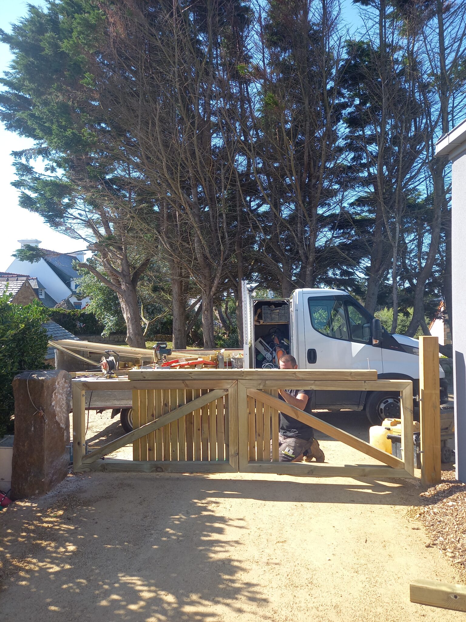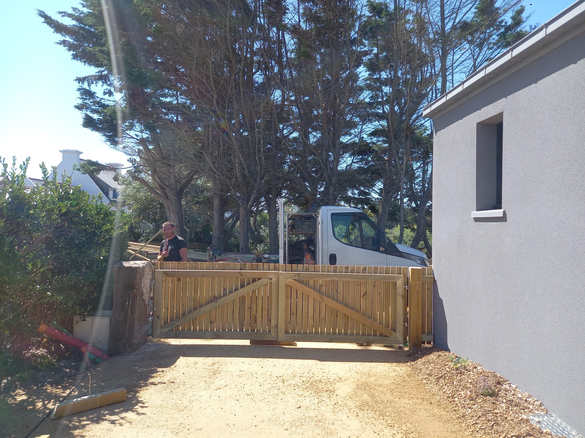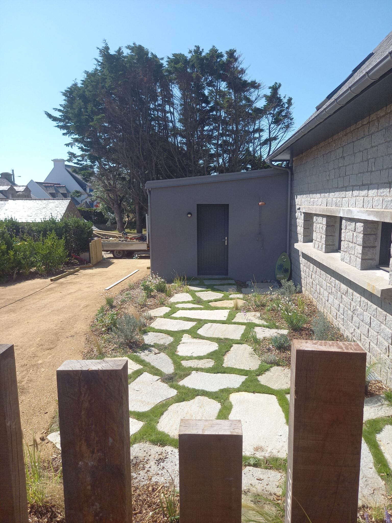 - Conception de divers éléments (local poubelle, portail double ventaux, parking en stabilisé, brise-vue en traverses de bois … )