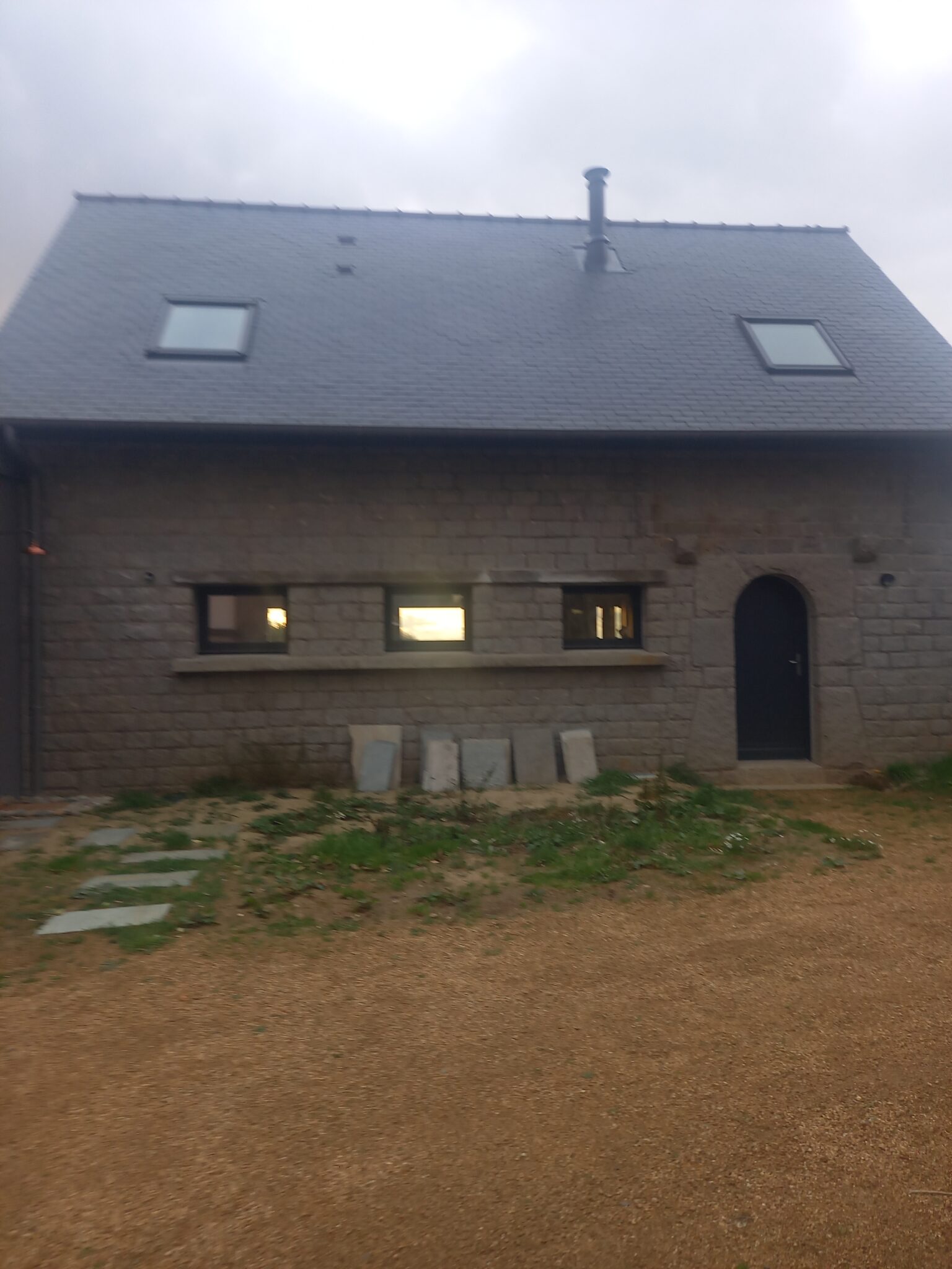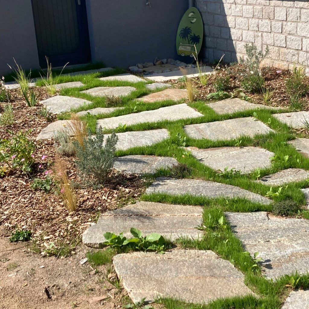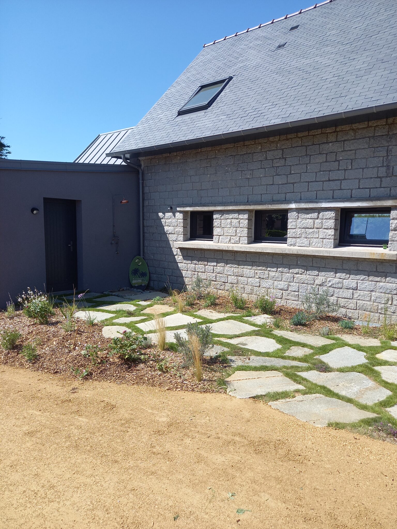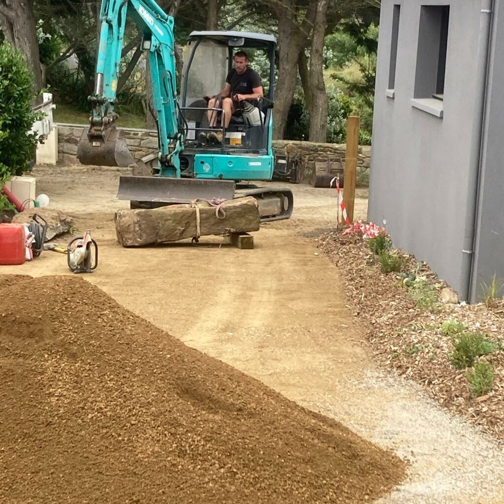 - Création d’une terrasse en dalles de pierre,