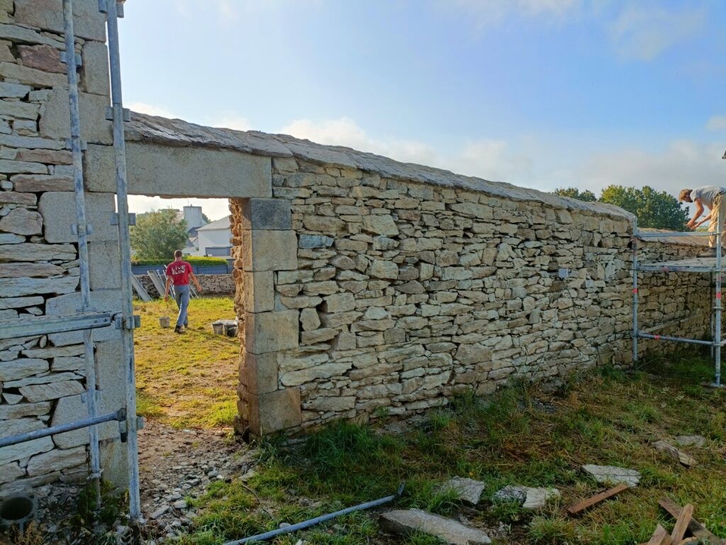 Un des éléments fort du parc au départ : ces murs en pierre délabrés qu’avec l’aide d »un excellent maçon et de ses équipes nous avons restauré, pierre par pierre.