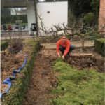 Ces clients Belges souhaitaient intégrer à leur jardin un potager avec des buttes de permaculture. Nous avons donc, les clients, leurs amis et moi-même mis la main à la bêche, le temps d’un week-end, pour créer quatre belles buttes de 3m de long. Nous avons planté différents légumes placés selon leurs besoins et leurs tailles. Des aromatiques en nombre ont pris place au milieu des vivaces car n’oublions pas qu’un potager a besoin aussi de fleurs pour bien fonctionner.