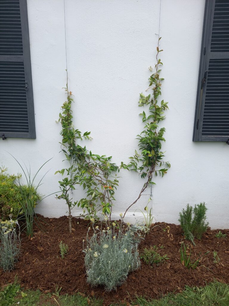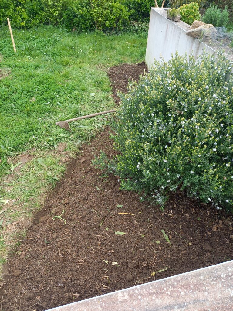 Quand j’arrive, c’est un jardin sans structure, assez vide où flottent les plantations des clients qui m’accueillent. L’envie est là pourtant : essayer, avoir un beau jardin, jardiner, passer ses vacances dans un jardin fleuri, romantique et bucolique. Et de la place pour tous et toutes dans ces deux jardins devant/derrière. Vous voulez jouer au ping-pong, déjeuner dehors, lire au calme, jardiner au potager, faire des bouquets, manger des fruits, bref vous voulez tout dans un espace tout en longueur.