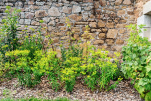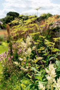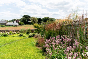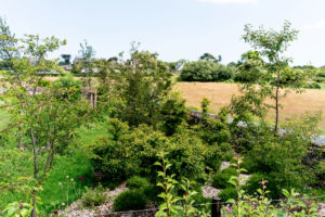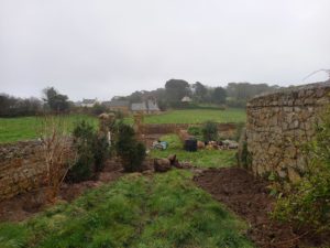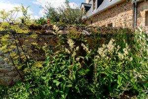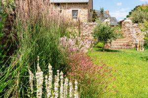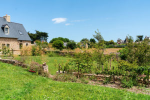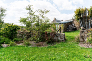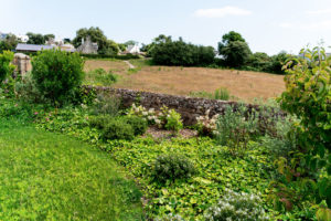 Il s’agit d’une maison refaite à neuve au milieu des prairies pâturées. Une histoire, une ambiance, des circulations, plusieurs petits jardins en un sont déjà présents. Un jardin clos de hauts murs en pierre, sublime.