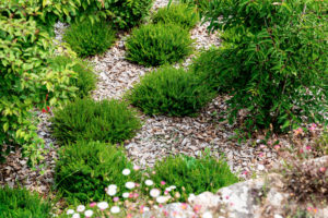J’imagine un cordon arbustif et arboré haut pour plus d’intimité. Des mixed-border soulignant les droites minérales toutes en courbes. Des floraisons légères et colorées. Un potager, des petits fruits des plantes adaptées à la sécheresse (Feijoa, quercus ilex, arbutus, bupleurum).