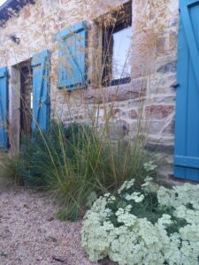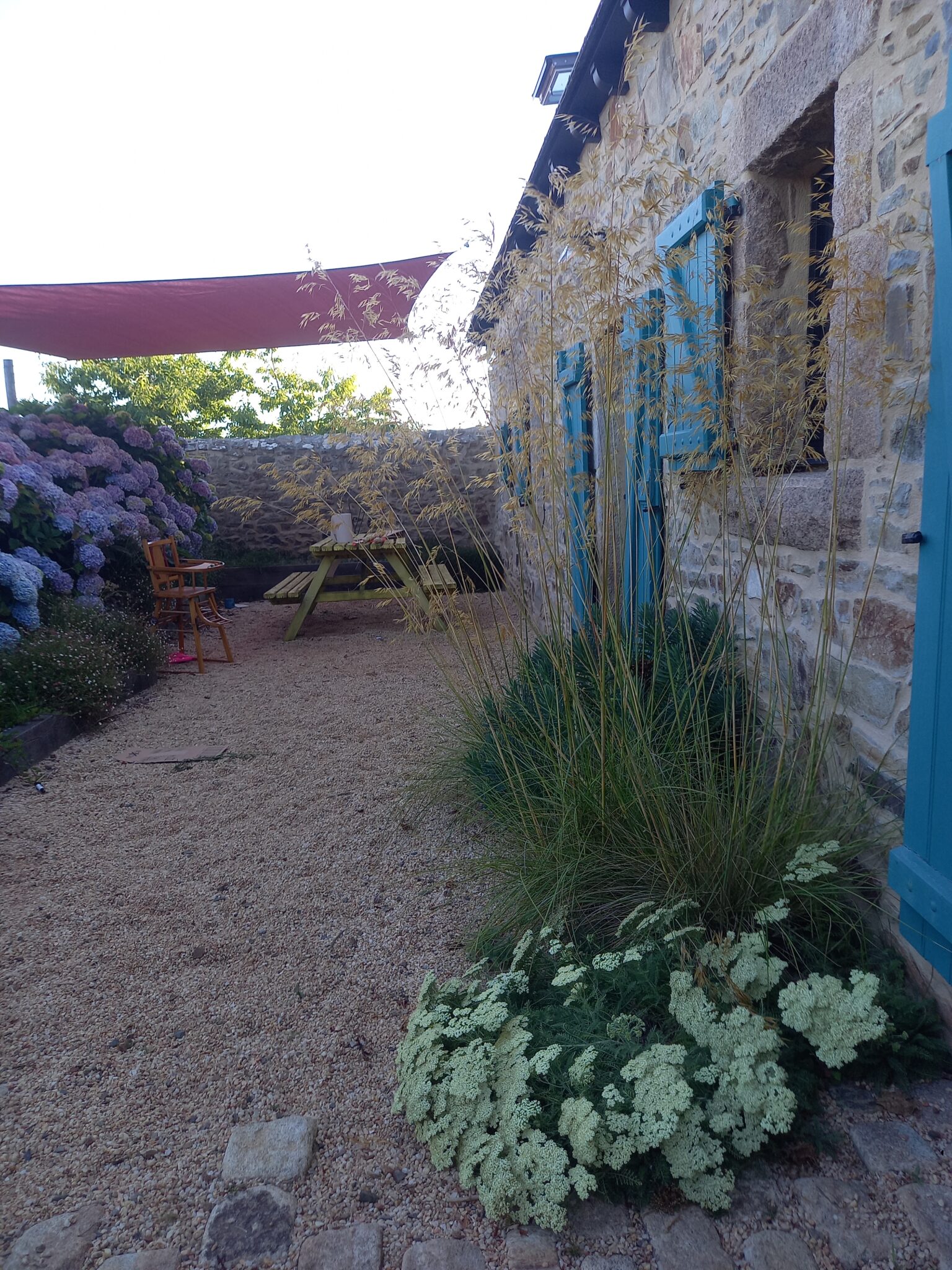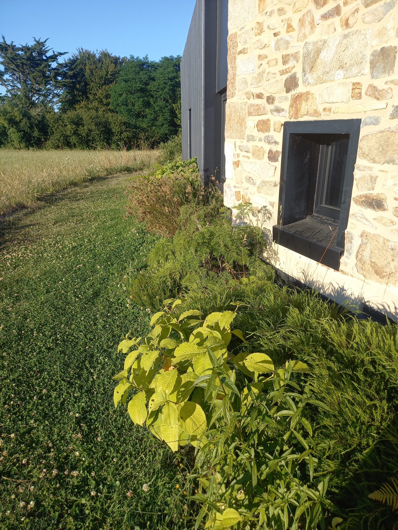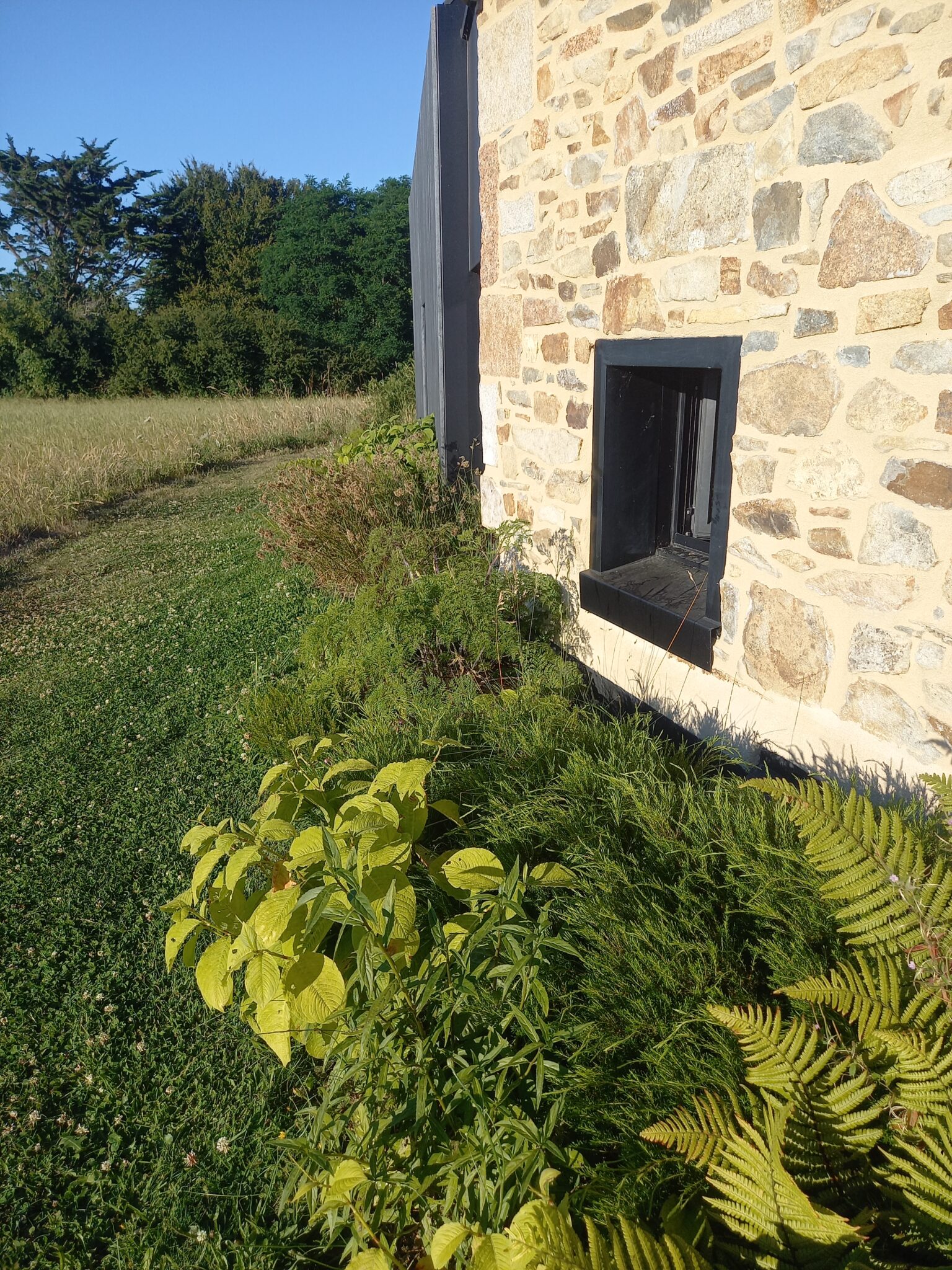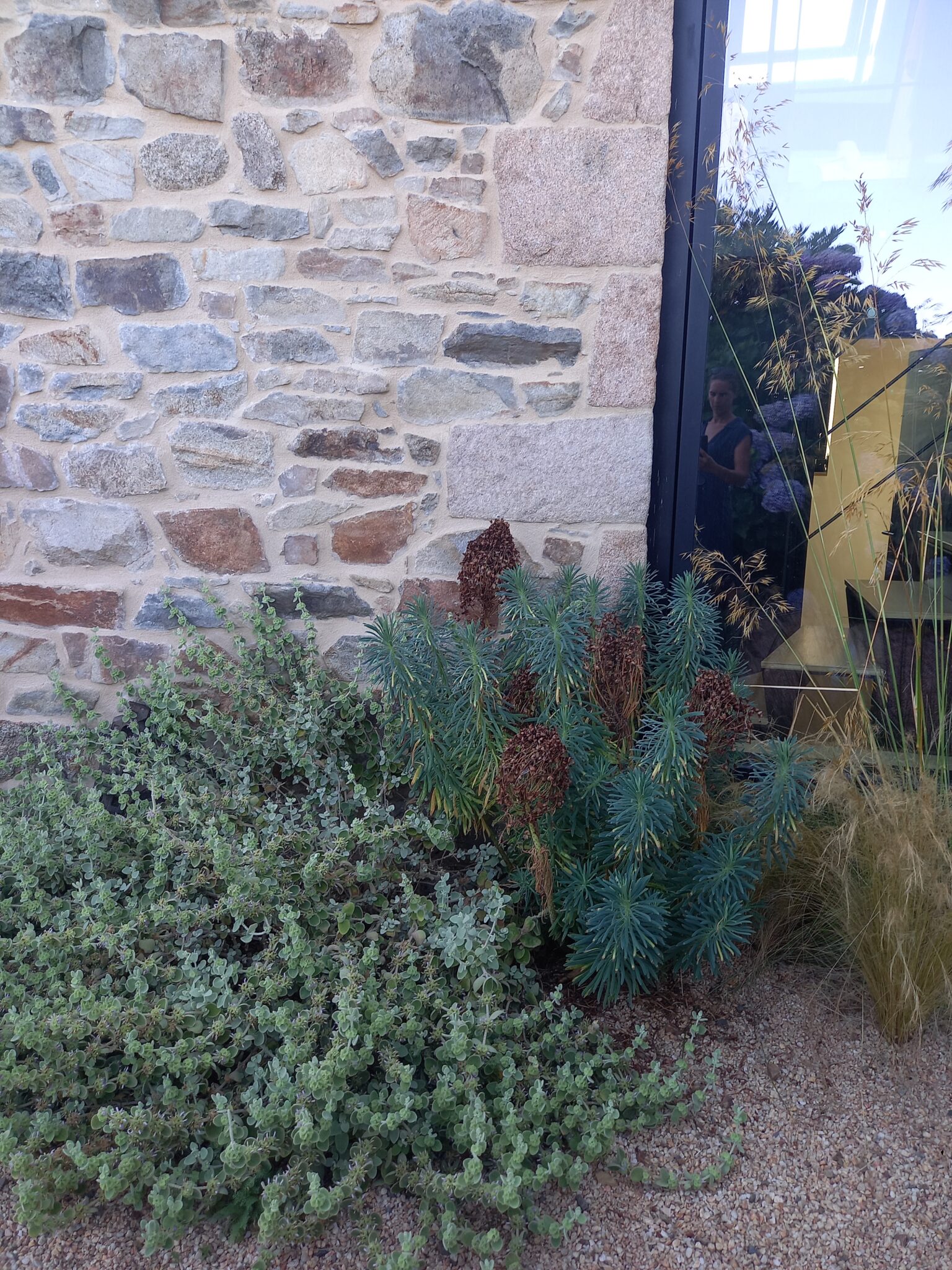 J’ai travaillé ici par touches végétales bien placées pour un entretien minimum.